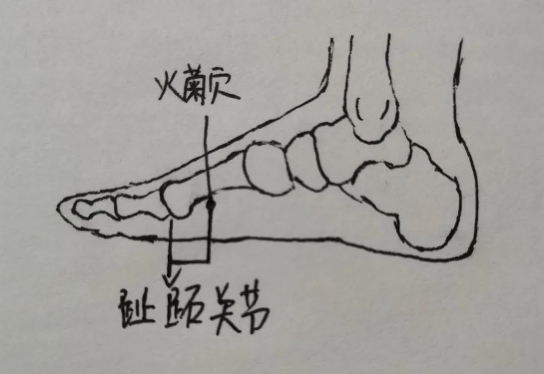 火菊穴,在足内侧,第一跖趾关节向后1寸。