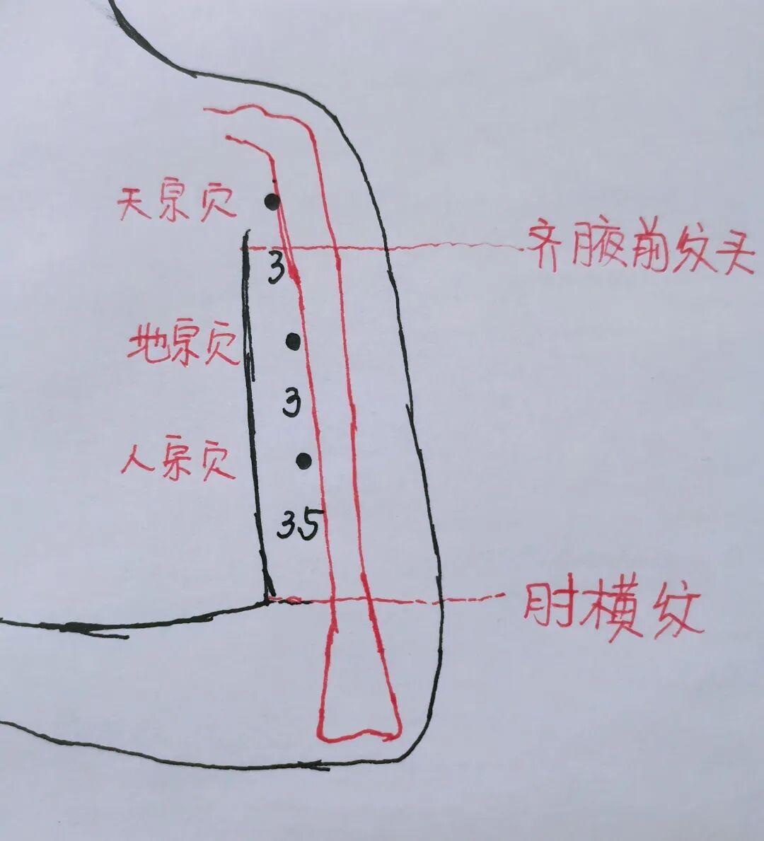 心灵三穴,在手掌面,桡侧腕屈肌腱和指长伸肌腱之间,腕横纹直上3.5寸。