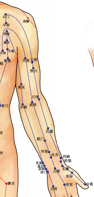 下面介绍下肺经的穴位。肺经起于中府止于少商。