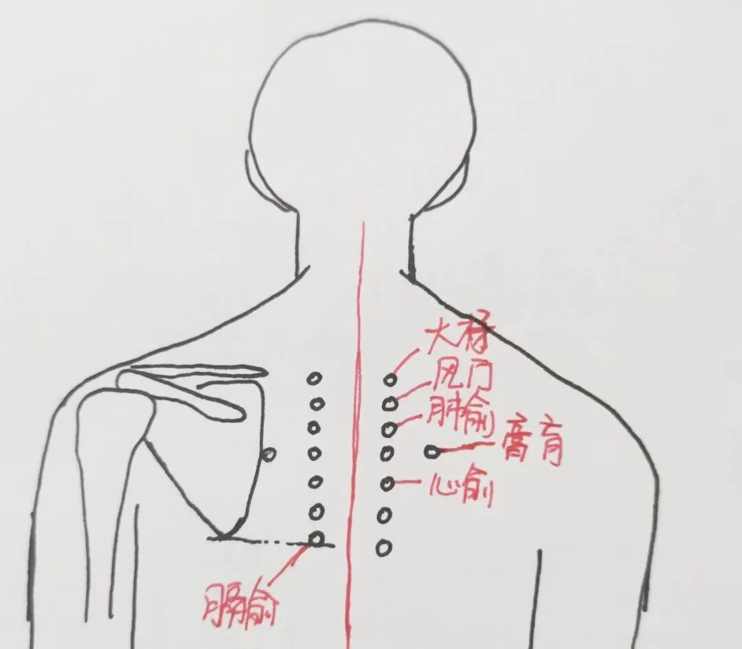 先用TDP照射双侧肺俞15分钟,再沿脊柱两旁、肩胛骨内侧缘、肺俞穴来行推拿手法,简单的按揉就可以。