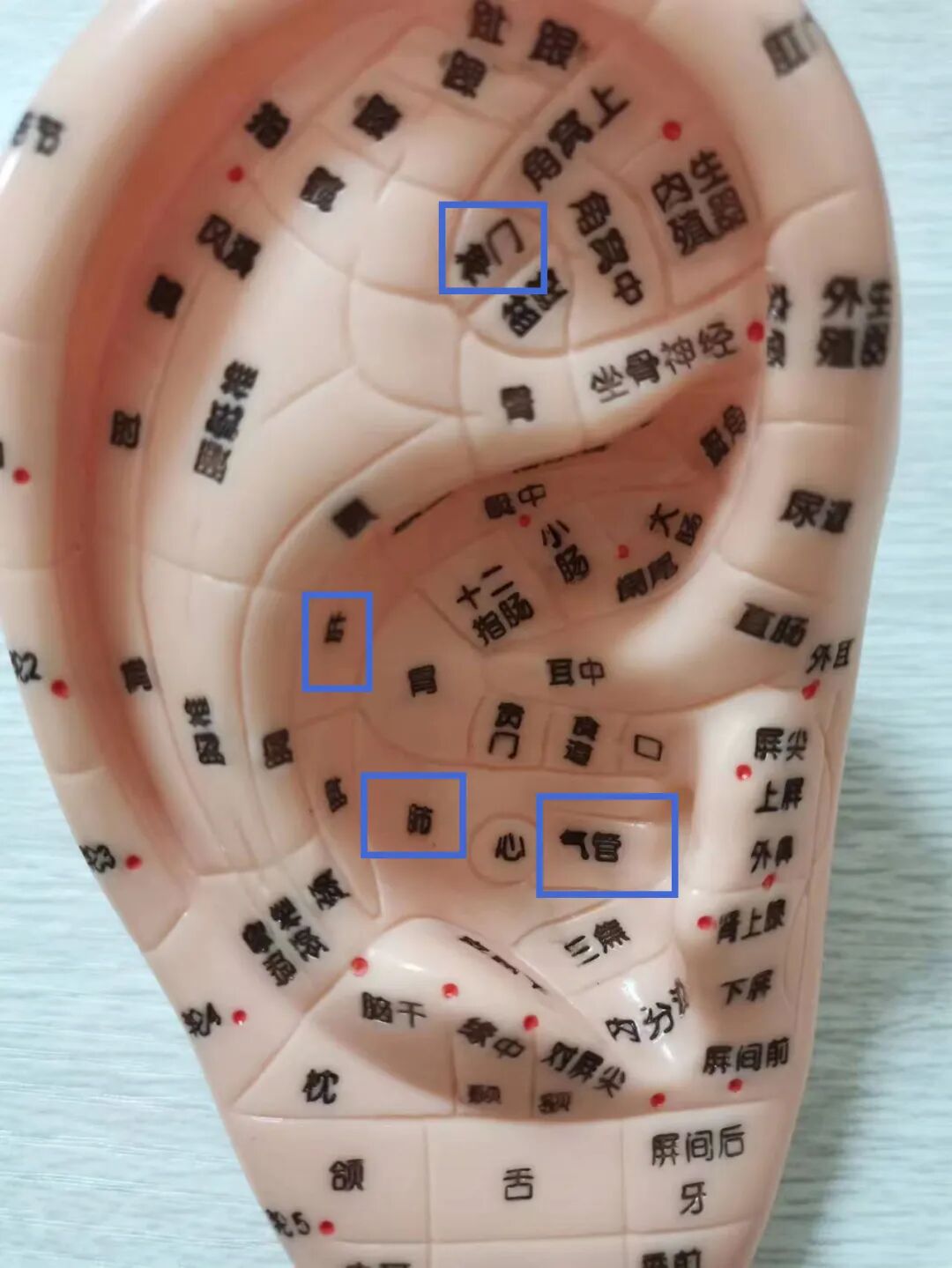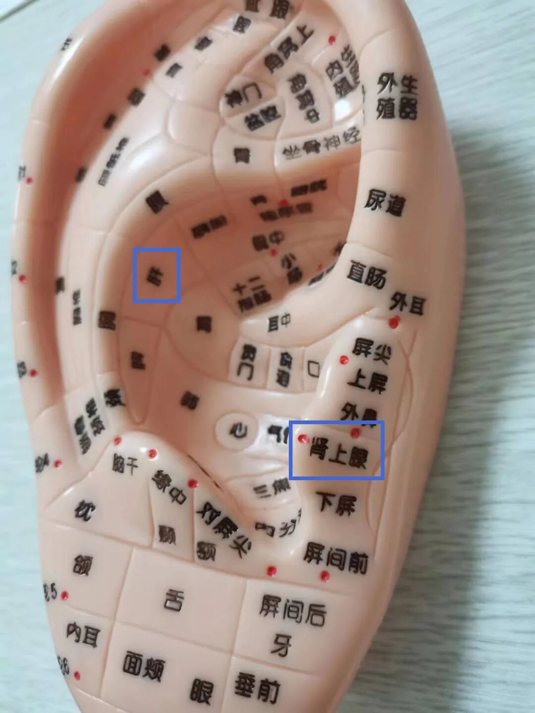 耳穴在耳郭表面的分布状态,就像一个倒置在子宫内的胎儿。耳穴呢是耳郭表面和人体脏腑经络、组织器官、躯干四肢相互沟通的特殊部位。既是疾病的反应点,又是疾病治疗点。