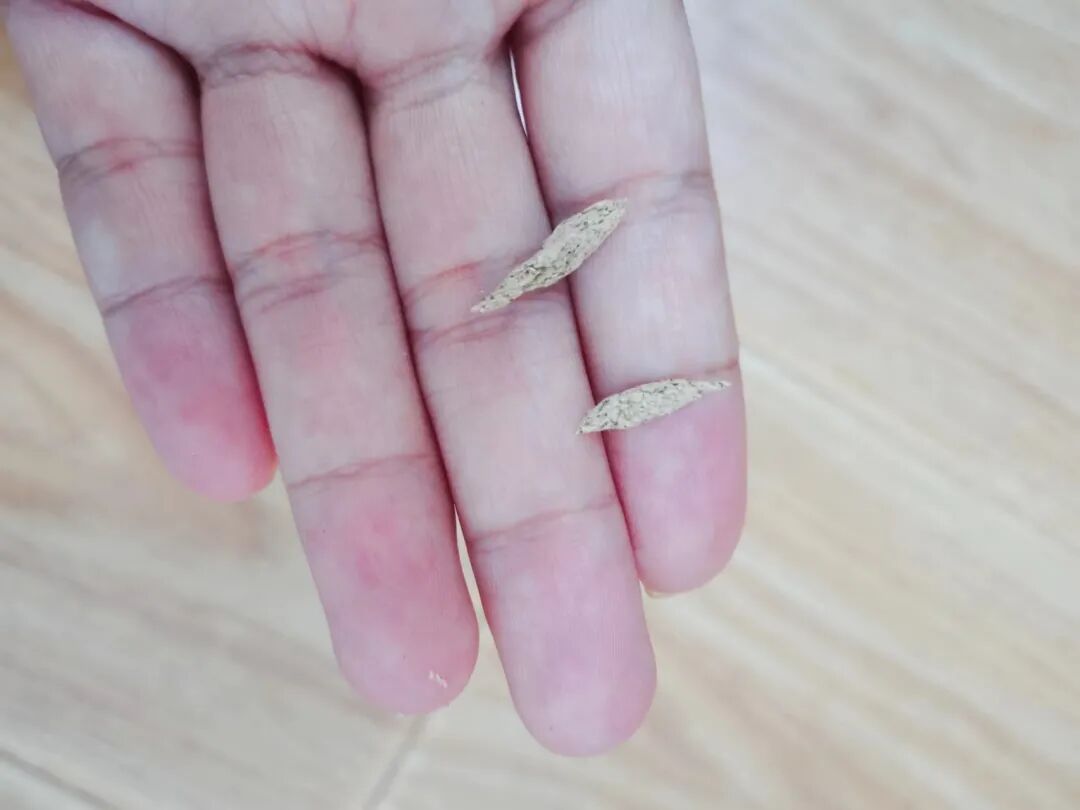 取出一些艾绒,搓成米粒大小,下平为了保证在皮肤上能平稳放置,不然艾绒倾倒会烧伤皮肤。