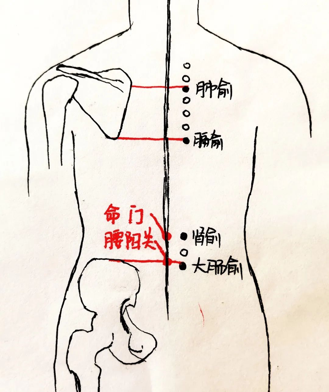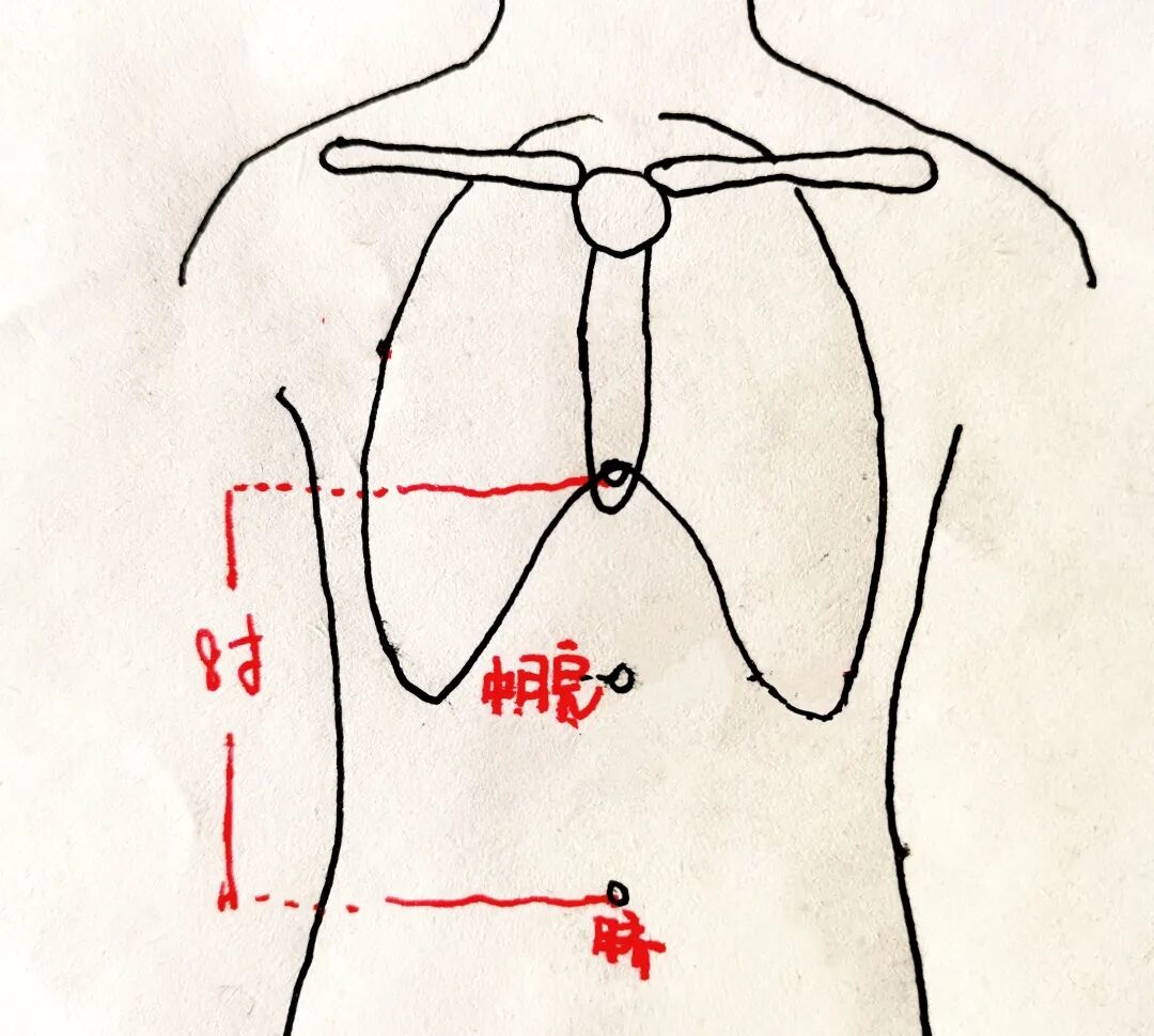 肺俞在背部,第3胸椎棘突下旁开1.5寸。第3胸椎其实是横平肩胛冈,肩胛骨内侧缘和脊柱的距离是3寸,这样就不难找到肺俞穴了吧!