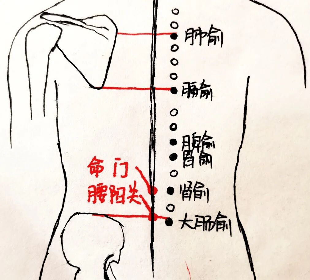 胃俞在背部,12胸椎棘突下旁开1.5寸。取法,肩胛骨下角横平第7胸椎,向下数3个胸椎棘突是脾俞,脾俞下就是胃俞。