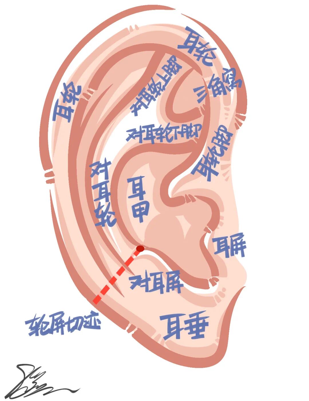 直至到了清代,有一个叫张振鋆的人,把耳廓分为心肝脾肺肾五部,并且还绘出了耳背穴位图,这个耳穴图便是世界上首次印、载的耳穴图。