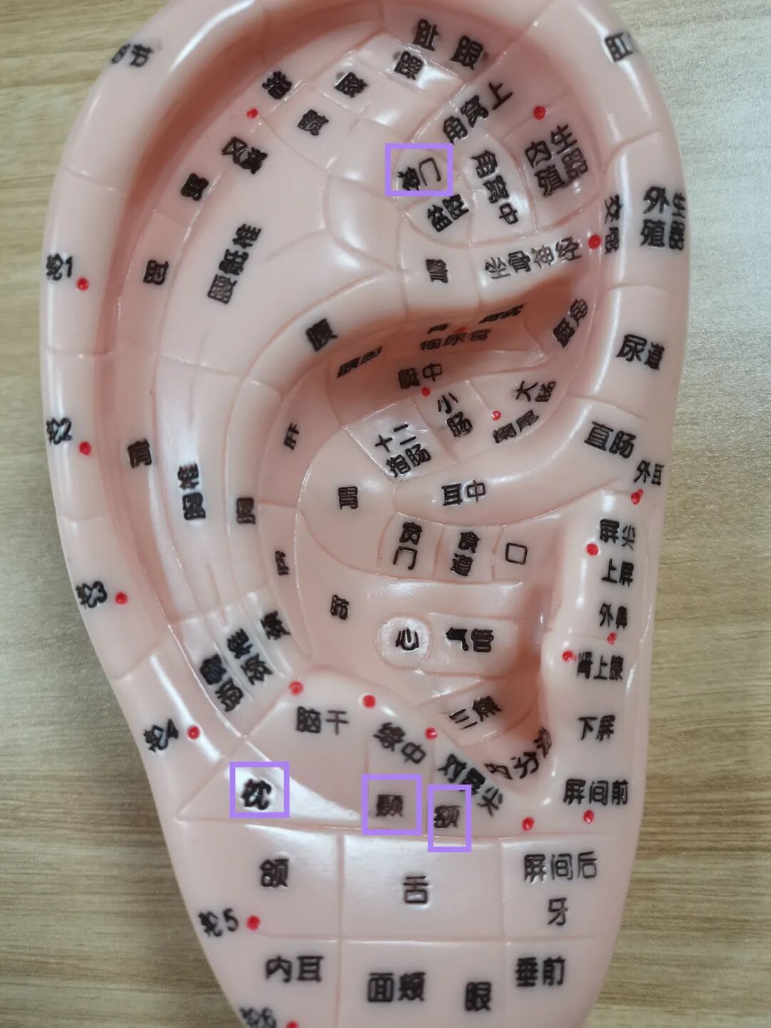 推荐耳穴:神门、交感、皮质下、内分泌、胰胆、敏感点(颞、枕、额)