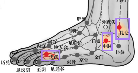后头痛:天柱、昆仑、玉枕、后溪、申脉
