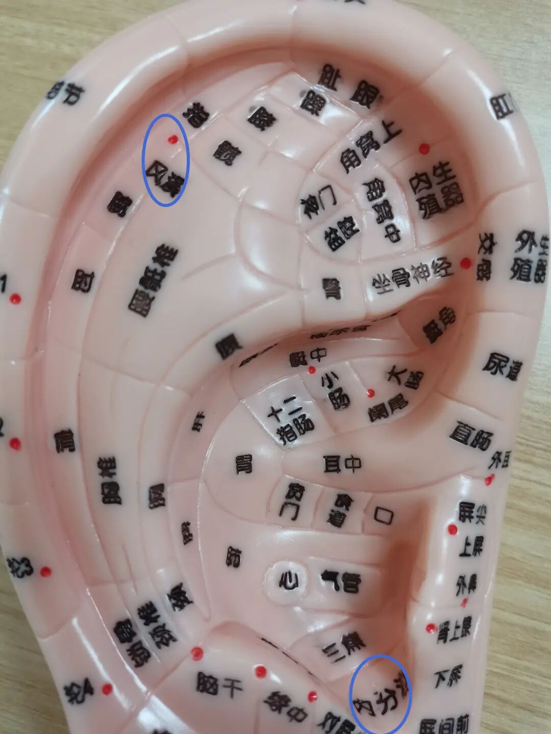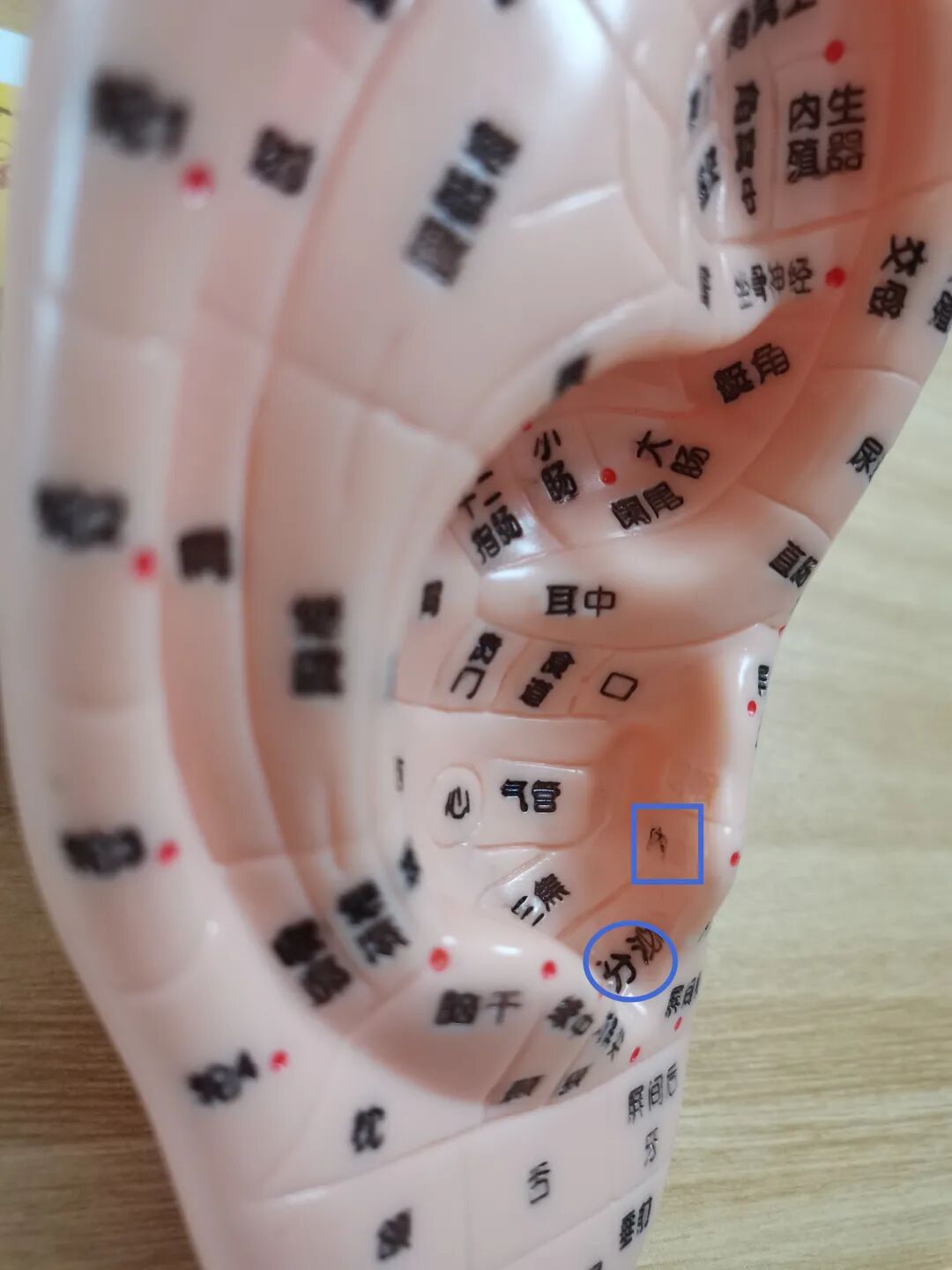 操作:耳朵皮肤消毒,探穴笔找到穴位敏感点,把有王不留行籽的小胶布压在相应的穴位上,每天捏压3~4次,需要出现酸麻胀痛感,2~3天后换贴另一侧耳朵。