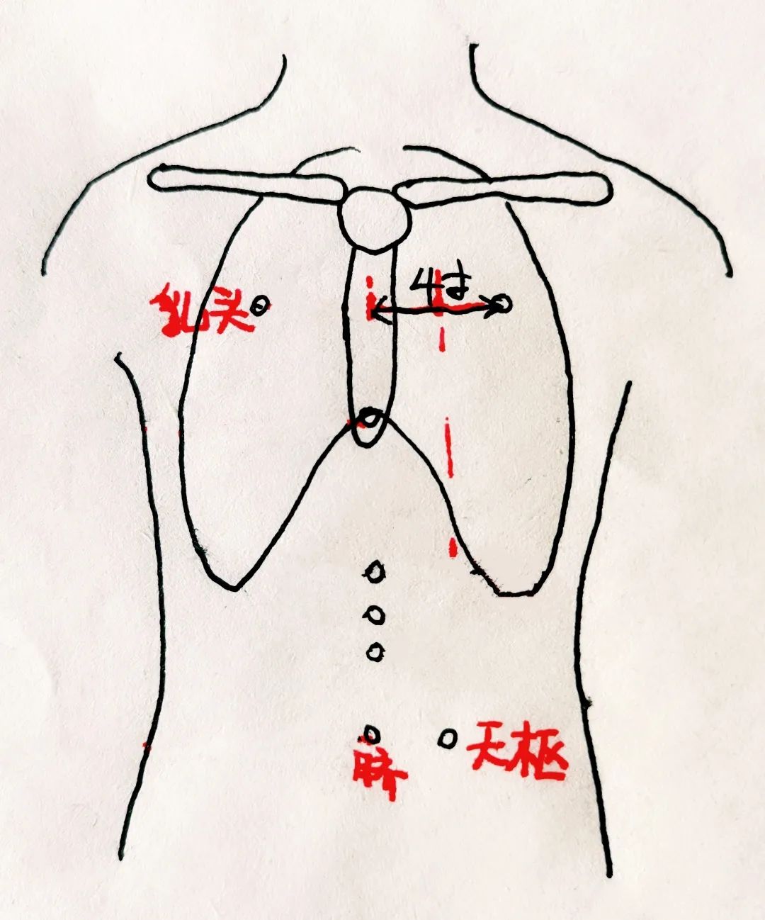 旁开2寸怎样确定呢?乳头和前正中线之间距离为4寸,一半就是2寸。