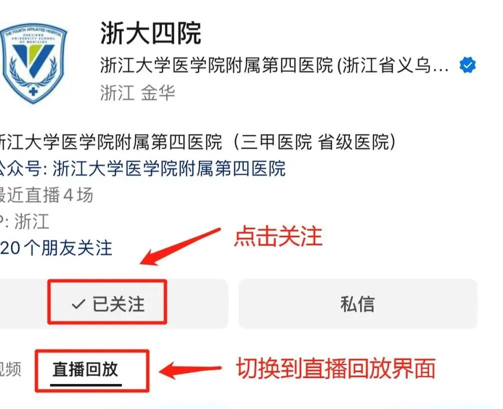 是不是没有关注浙大四院视频号呐