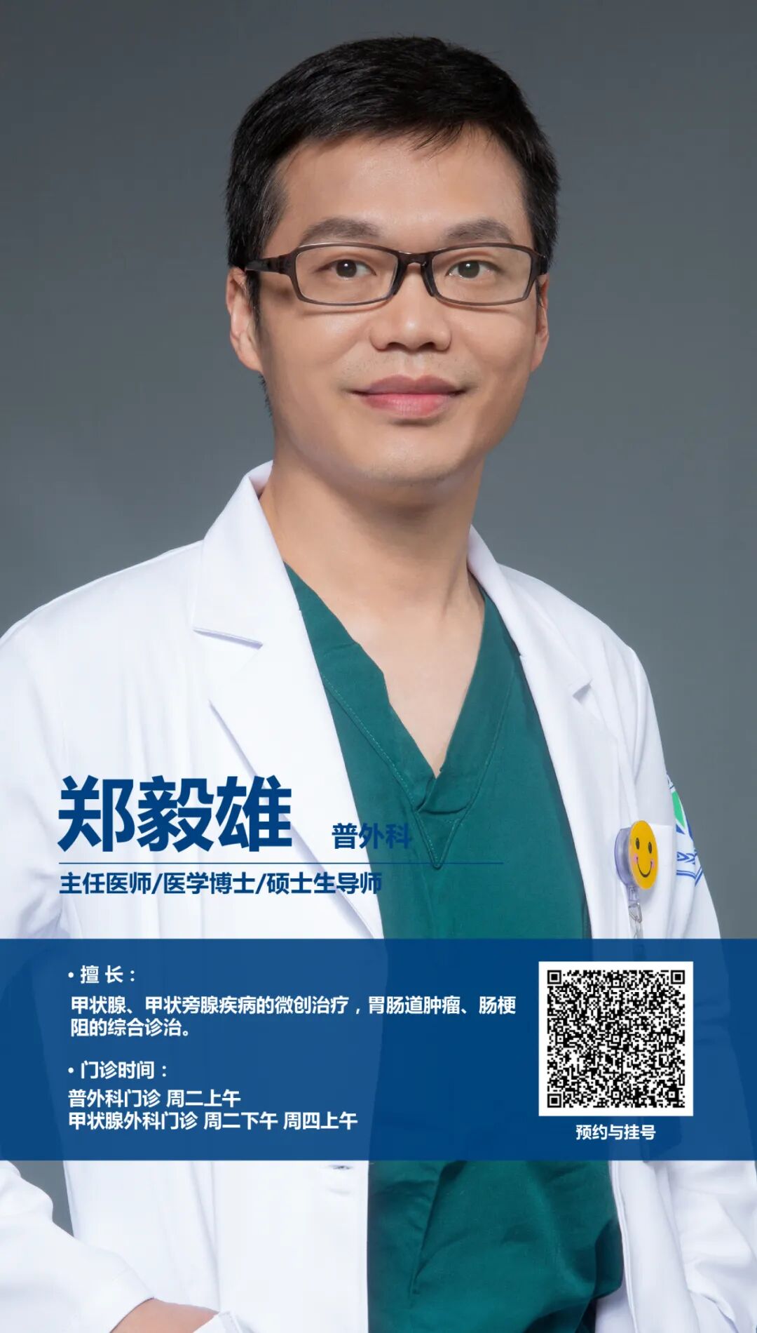 浙大四院甲状腺外科中心郑毅雄主任医师来自浙大二院普外科,响应优质医疗下沉的号召,扎根浙大四院服务浙中百姓已经超过8年,是同事心中的好老师,更是患者心中的好医生。