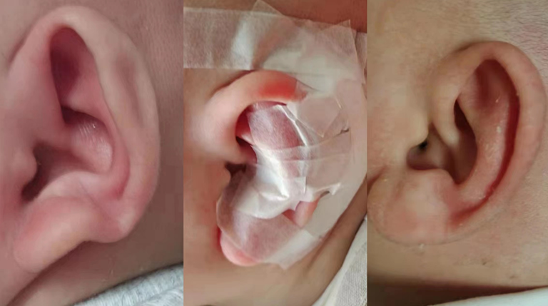 出生1周内治疗效果最佳,治疗时长一般不超过2周,出生1~6周大的婴儿治疗时长在1个月之内,出生6周以上的婴幼儿治疗时长可长达2个月。隐耳和部分杯状耳患儿需要分2~3个阶段进行矫正,治疗时长可适当延长。