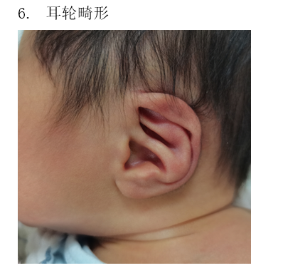 凸起、耳轮畸形、合并两种以上畸形的复合耳畸形以及其他耳廓扭曲变形。