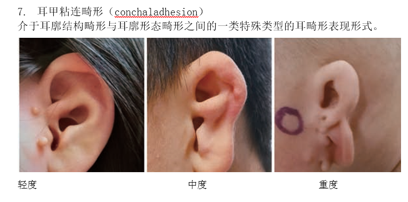 耳廓形态畸形,包括招风耳、猿耳、垂耳、杯状耳、隐耳、耳甲异常