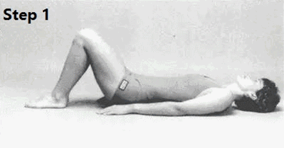 Step 1:平躺在地上或床上,双腿弯曲,两脚平放;