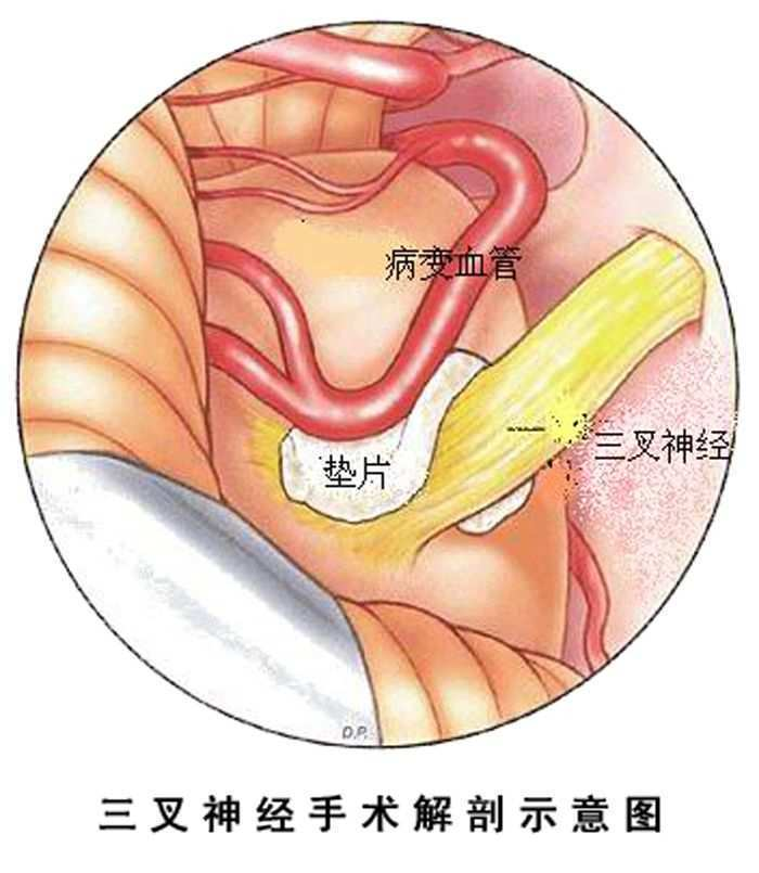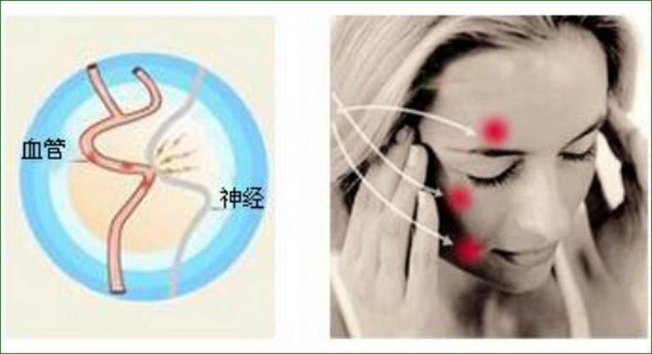三叉神经痛病理机制为控制颜面部感觉的三叉神经受到血管压迫,搏动的血管持续冲压三叉神经,导致疼痛的反复发作。