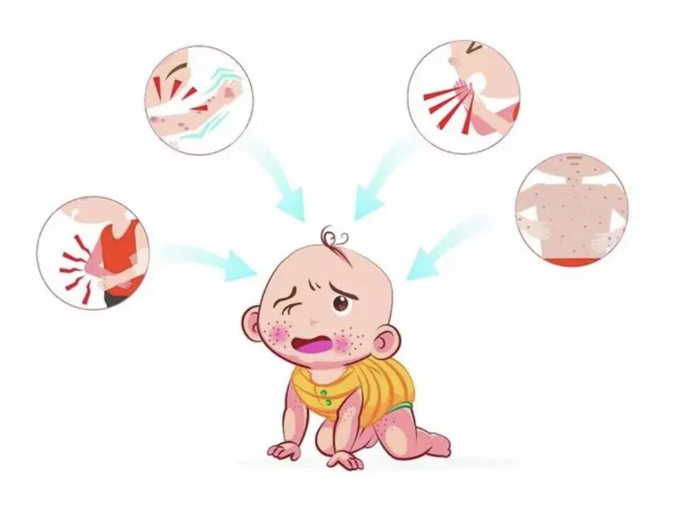 通常在婴幼儿时期表现为湿疹或食物过敏,3 岁左右上述症状会自行缓解,但会逐渐出现呼吸道过敏性疾病,多表现为鼻炎、哮喘等等。
