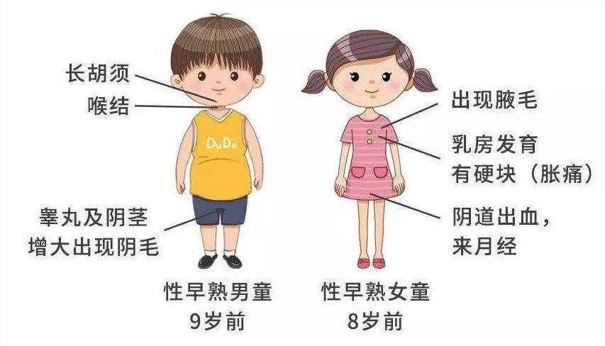 中枢性性早熟(又称真性性早熟)除了有第二性征的发育,卵巢和睾丸也有发育,其发育顺序与正常青春期基本一致,只是年龄明显提前。