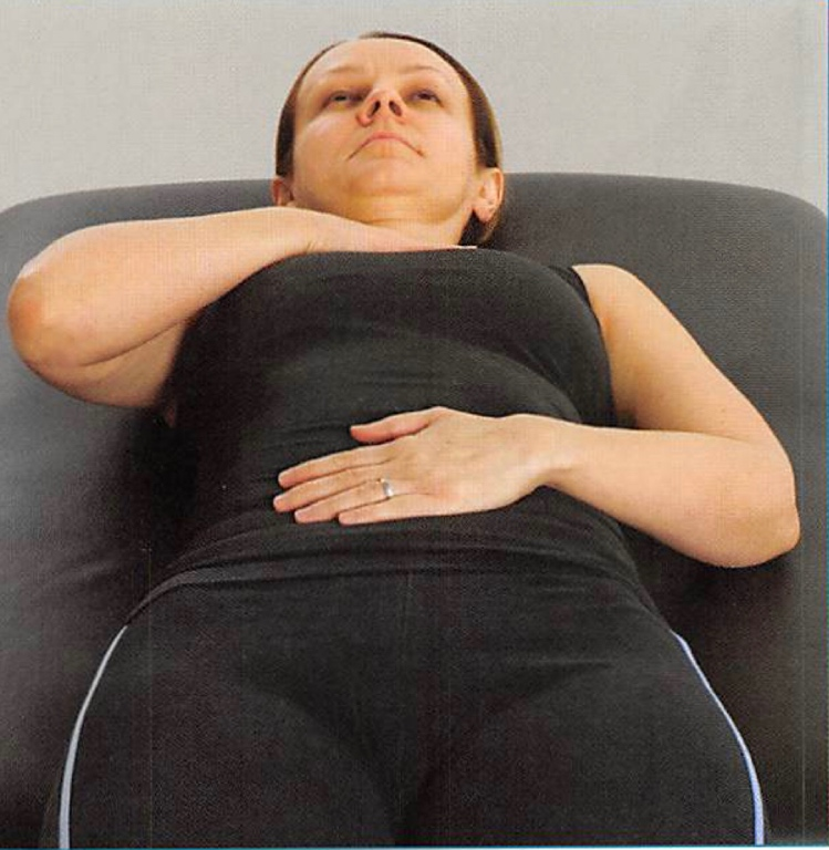 动作要领:腰部紧贴地面,吸气时腹部隆起,呼气时腹部向脊柱方向收紧,吸气:呼气 = 1:2。