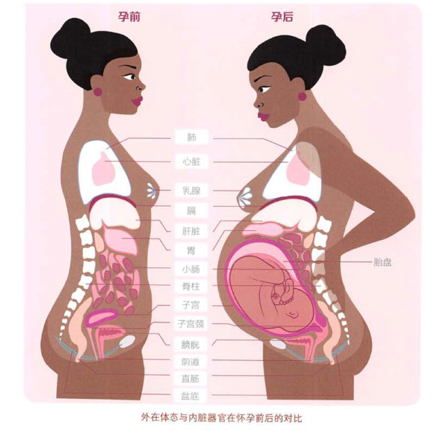 孕晚期,随着胎儿生长,孕妇重心前移,骨盆开始前倾。为保持身体平衡,孕妇的头和肩会向后仰,腰部向前挺形成典型的孕妇姿势,使得腹部和腰部肌肉出现失衡,腰部肌肉出现劳损引起疼痛。