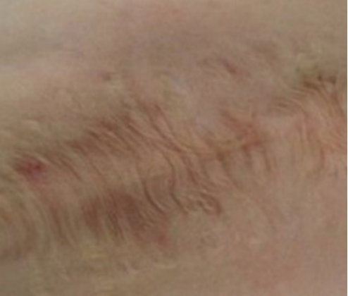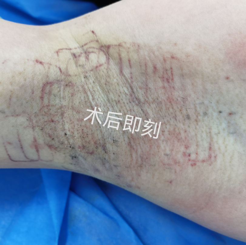 小切口刮除法虽然伤口较前变小,但因皮下组织剥离范围较大,术后需加压包扎,加压包扎直至拆线(10-14天),误工期长。且易出现包括皮肤坏死、切口延迟愈合等并发症。