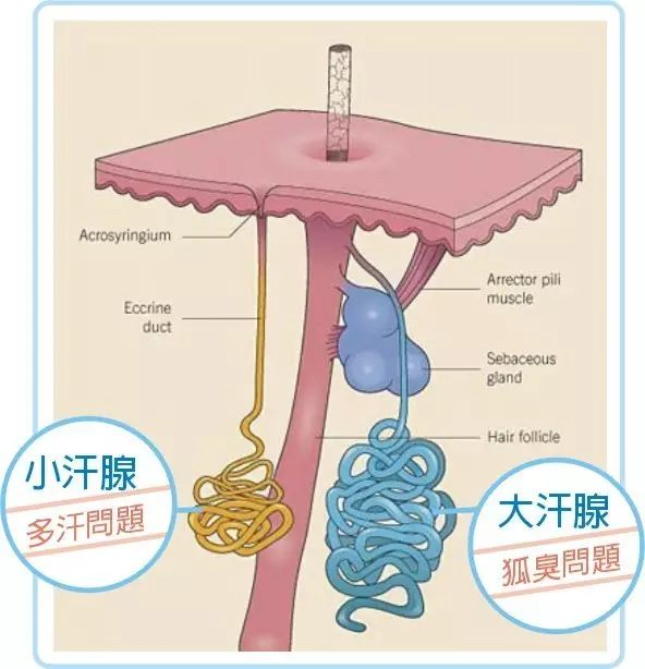 但是每个人体表都有细菌,因此,想要消除腋下多汗和异味问题,根本上得从解决汗腺着手。