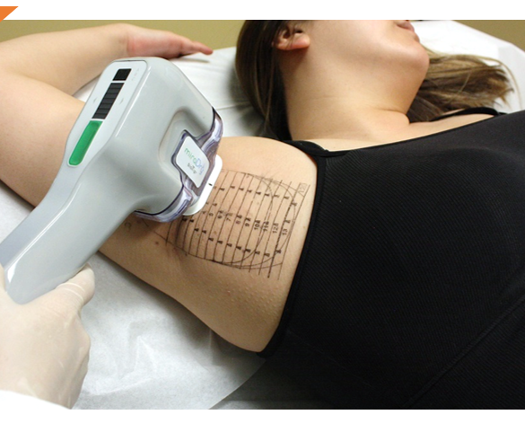 无需手术切口,结合微针技术和射频加热的特点,将微针快速穿透表皮,直接达到皮下汗腺组织后发射射频能量,通过热效应破坏汗腺组织,治疗过程微创,无痛,几乎不留瘢痕。