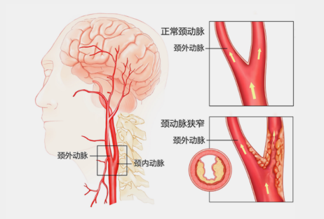 因为摄入过多或者代谢障碍,血液中过剩的脂质就像自来水管中的杂质形成水垢一样,会逐渐附着在血管的某些部位,形成血管斑块,并越积越厚,逐渐阻塞血管,继而造成颈动脉狭窄,导致脑供血不足。