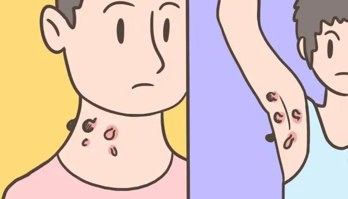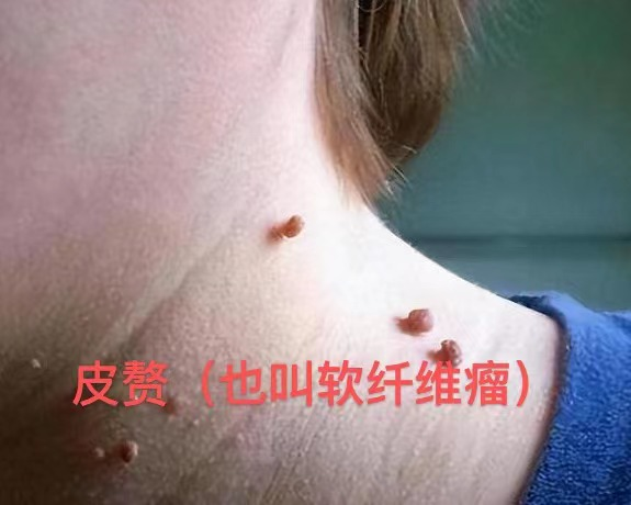 皮赘,又称软纤维瘤,为高出皮面的柔软带蒂赘生物,多为肤色或者深褐色,多发于颈部,腋窝和腹股沟等褶皱处。
