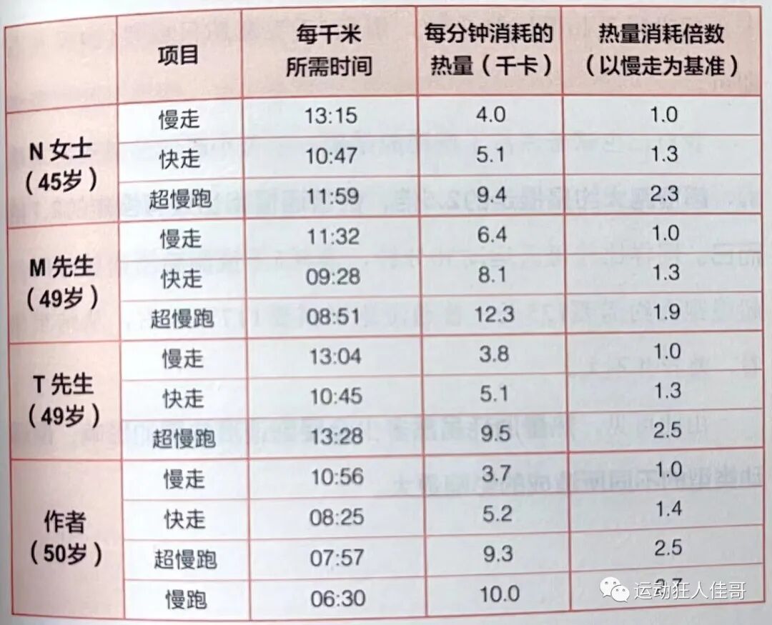 上图体验者的数据表明,超慢跑的热量消耗是慢走的1.9-2.5倍,普通慢跑也只有慢走的2.7倍,可见热量消耗虽然会受到速度快慢的影响,但运动类型的不同造成的影响更大,显然超慢跑效率及性价比更高。