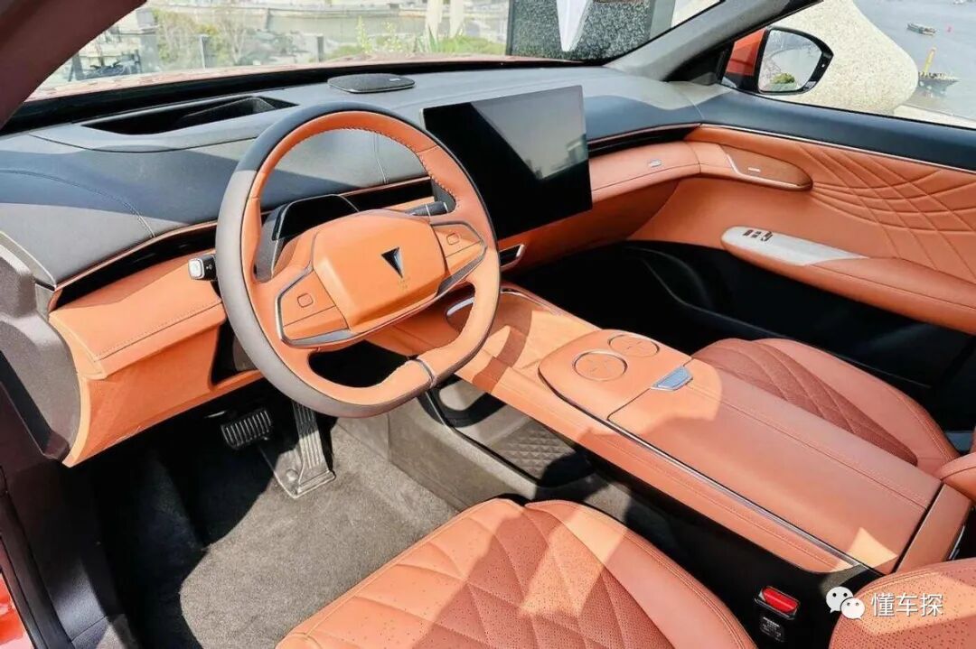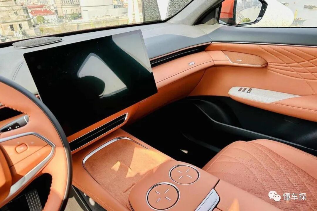 从内饰来看,车辆采用了环抱式中控布局,从中控置物台到门板装饰结构都完成了跨区域的融合。
