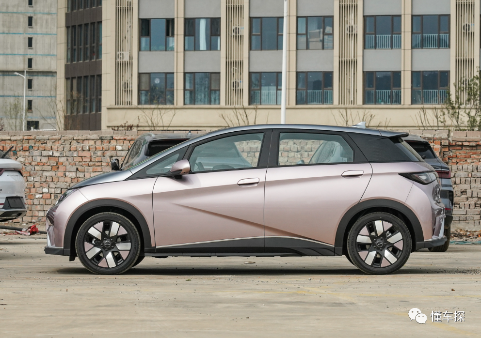 相比之下,比亚迪海豚的侧面线条更加凌厉,腰线和侧裙线形成了类似倒V字型的结构,使车身看起来有一定动感。