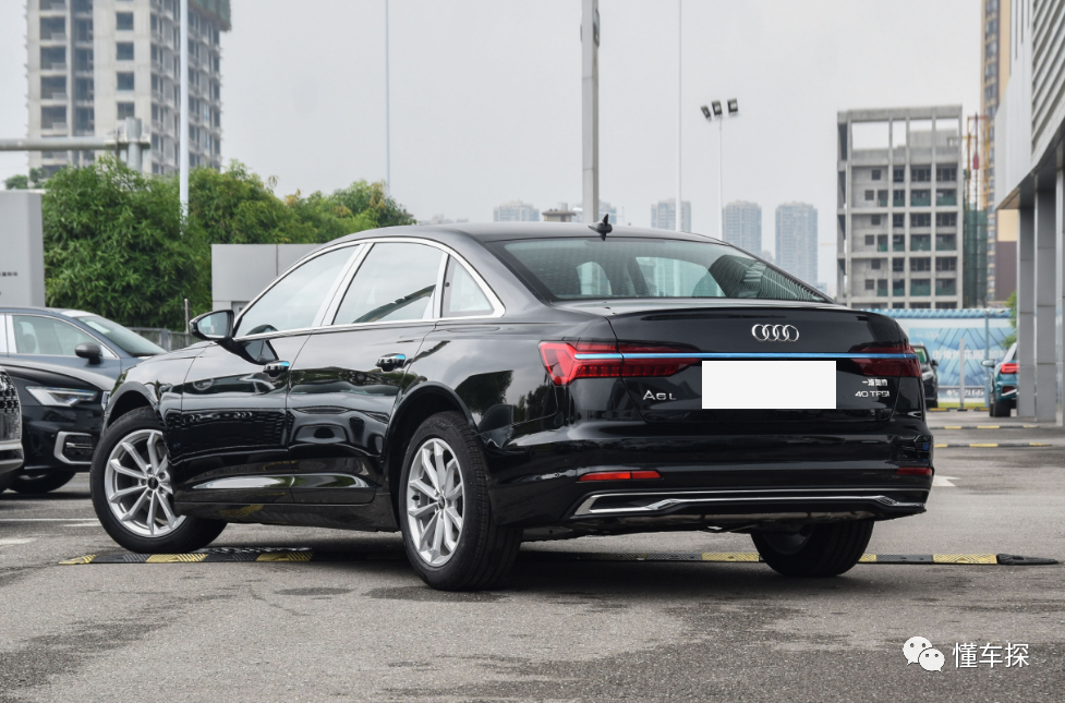车尾部分,奥迪A6L除了有一个分体式尾灯组外,车辆的后包围处有一圈银色饰条,这根银色饰条虽然没法取代排气系统的作用,但是能提到整个车尾的层次感。