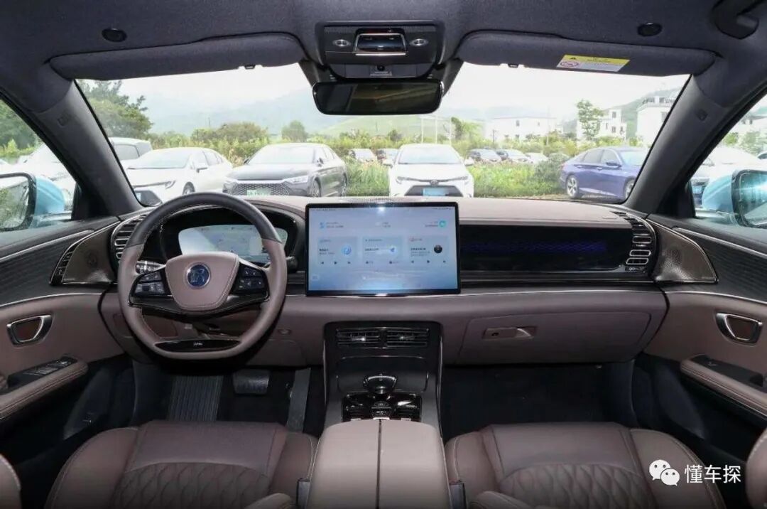 定位中大型轿车的汉DM拥有4975*1910*1495mm的车身尺寸和2920mm的轴距参数,车内座椅采用了符合国人偏好的造型布局,尊享型往上的车型都采用了真皮材质包覆,座椅不仅拥有厚实柔软的内部填充,椅面也加入了菱纹缝线处理,头枕处还带有“汉”字的LOGO,后排拥有宽敞的乘坐空间,同时大尺寸的天窗可有效提升车内的通透感,从而提升车内乘客的舒适度。