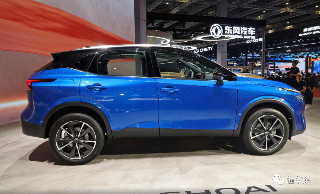 从车身侧面看,全新逍客采用了双拼色车身、悬浮式车顶等潮流设计元素,符合年轻消费者的审美喜好。