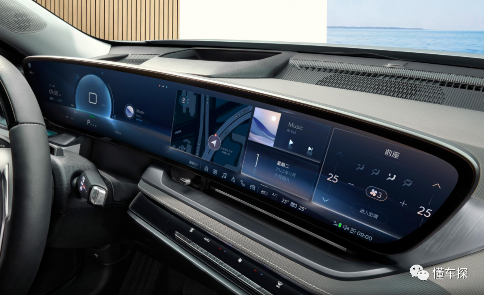 在如今的汽车市场,很多新能源车型都采用大尺寸屏幕来提高座舱内部的科技氛围,不少车型的中控台都被屏幕占满,甚至还有部分车型座舱内部的大尺寸屏幕超过5个,营造出“抬眼全是屏”的感觉,所以仅仅一块30寸的曲面屏,并不能给消费者太多科技气息。