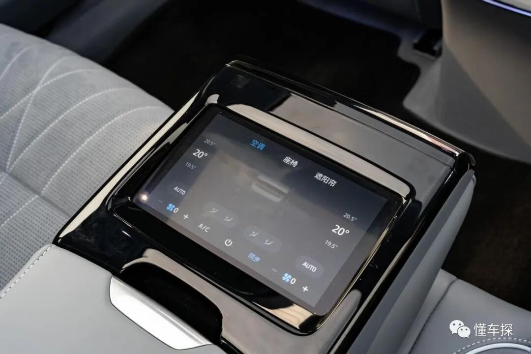 不止如此,为了方便大家操作空调、座椅按摩等舒适性配置,岚图追光还在后排中央扶手处设计了一款7寸触摸遥控屏,让操作变得更便捷。