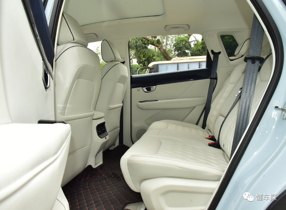 这款车的第二排座椅还能放倒,能和后备箱组成一张“大床”,长途自驾的时候开车累了,可以在车内睡上一觉。