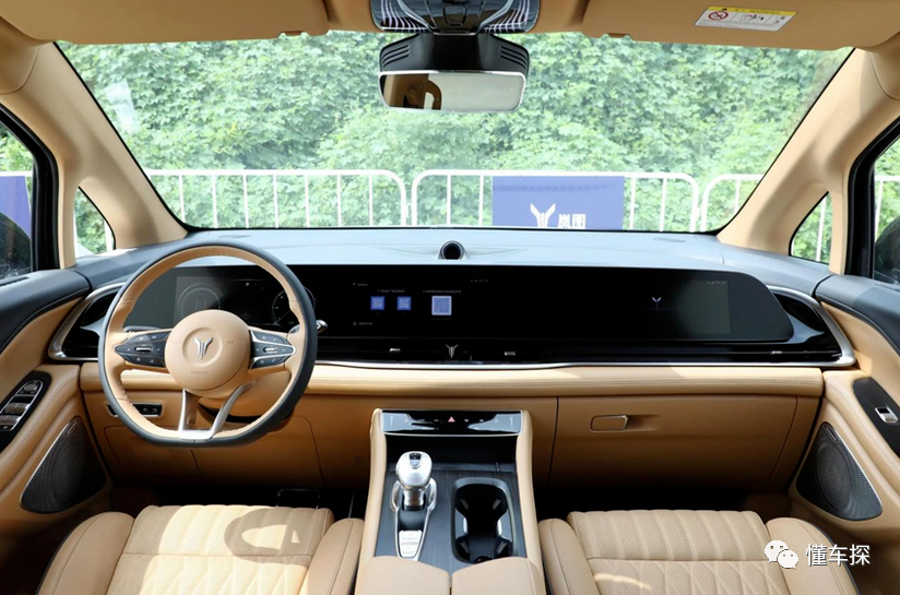 而岚图梦想家的风格则是欧式豪华风格,车内是采用了驼棕配色,并且中控台还带有三联液晶大屏的设计,科技感表现更为突出。