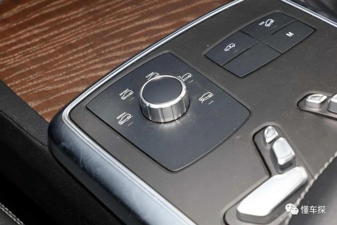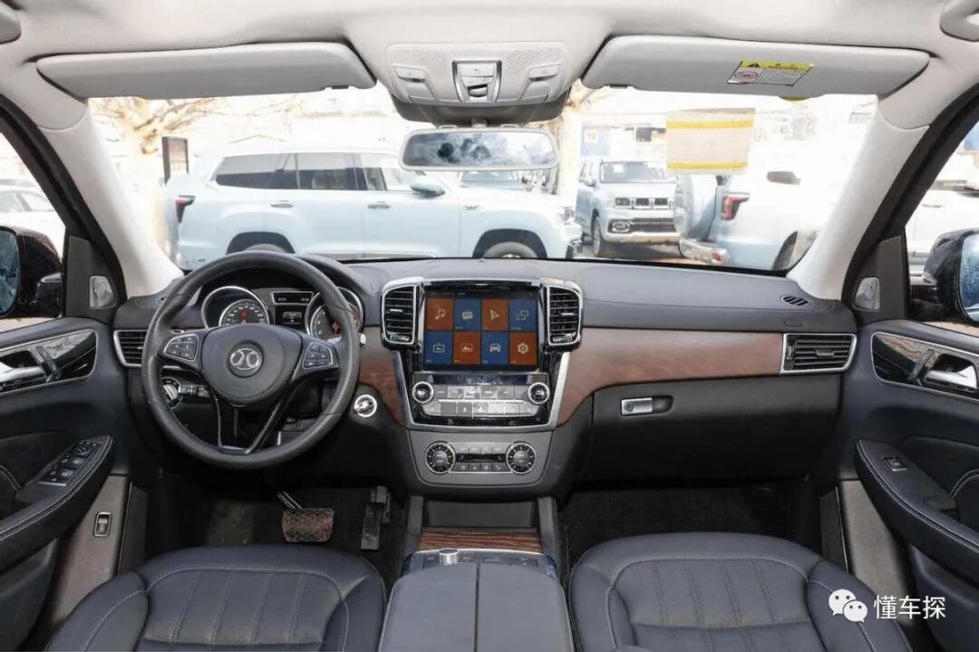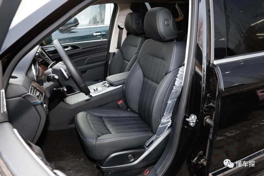 但跟BJ90一样,从方向盘到座椅,车辆都还是给了全真皮,T型结构中则是木纹装饰面板,并采用了电子换挡机构,老气是够老气,但触感舒适性、操作便捷性也还是很高的。