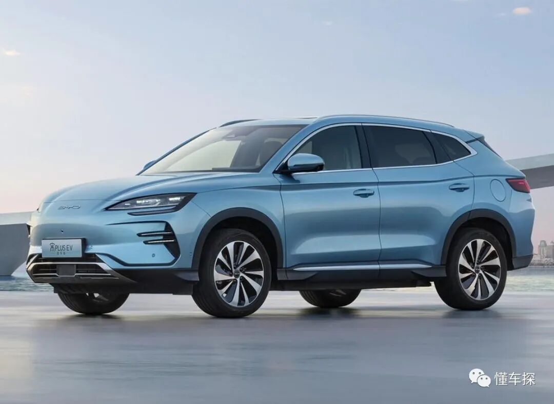 宋PLUS 冠军版车型也更加扁平运动,加上全新增加的天青色和苍烟色车身配色,其颜值也有了进一步提升。