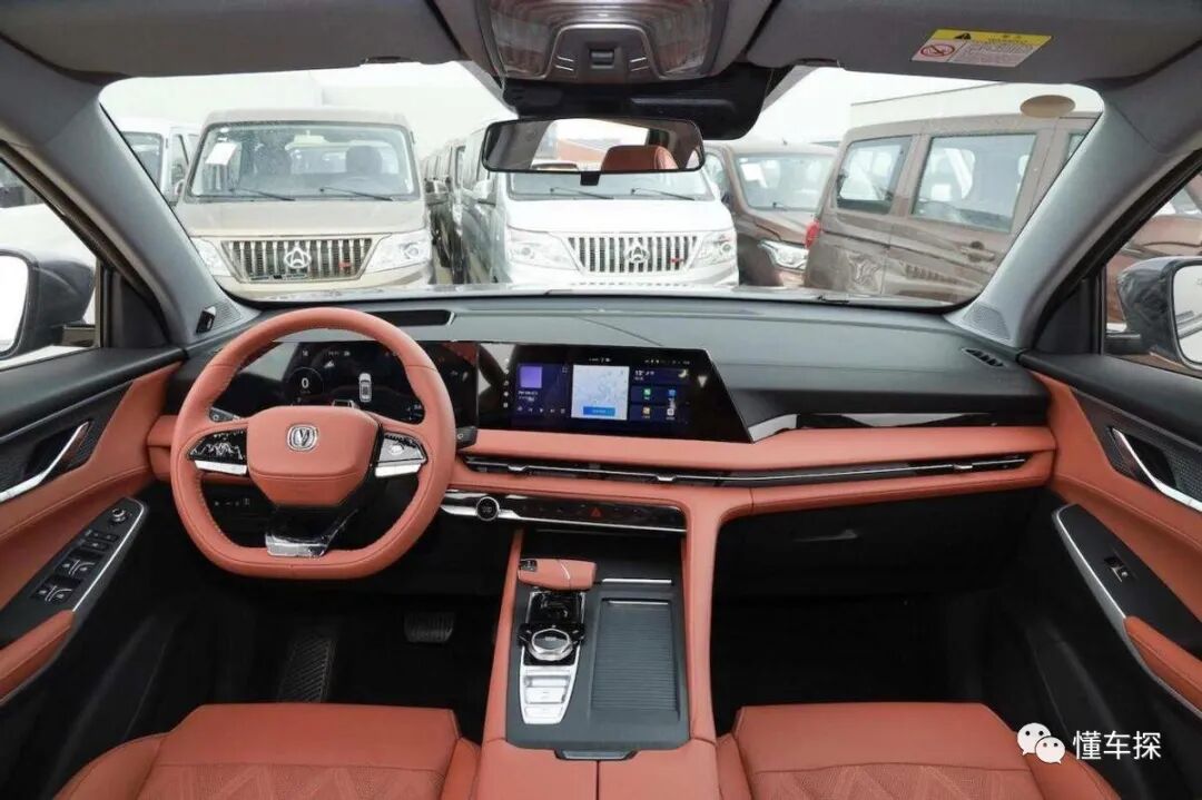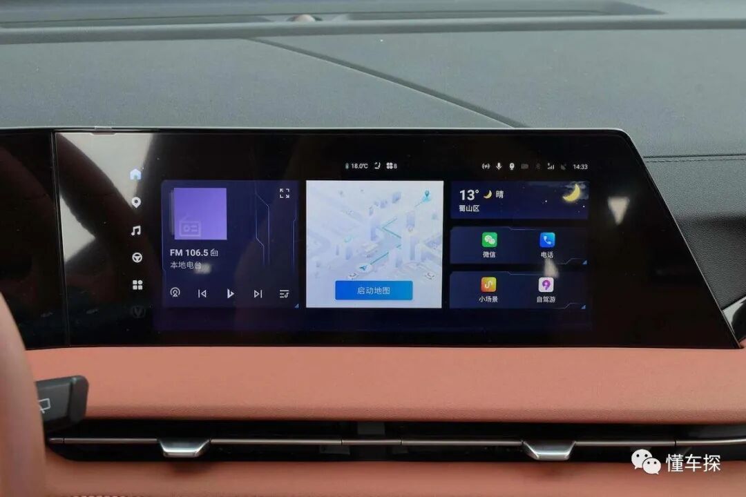 从带触控的三辐式方向盘到双联液晶屏,再到换挡机构形成的外侧半包围、带侧倾的贯穿出风口以及空调触控板、多媒体控制器等等。