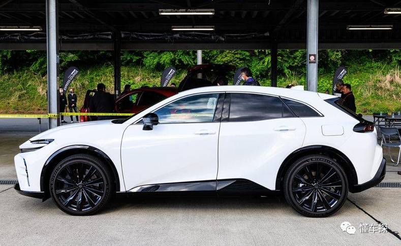 从侧面来看,丰田皇冠Sport还真有几分像法拉利Purosangue,这两款车型都采用比较低趴的车身姿态,两款车型的车顶都从B柱位置开始往后下压,后风挡玻璃均有一定的倾斜角度,形成类似轿跑SUV的既视感。
