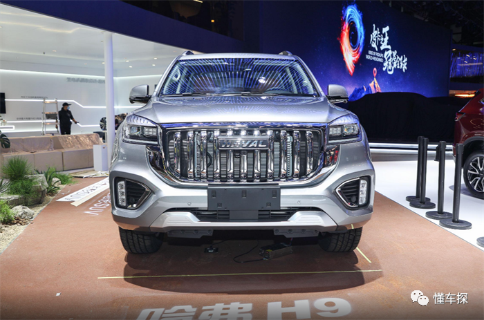 从外观的角度去看,哈弗H9的表现还是很霸气的,直瀑式的前脸设计以及银光灿灿的镀铬装饰搭配上两侧的大灯,气场十足,而且哈弗H9的造型多少和坦克500的外观有点相似,车身侧面哈弗H9的俯冲感确实更加明显,线条也更有棱角,但整个车身缺乏沉稳气质,车尾部分哈弗H9的设计也是比较粗糙的,不过有“小书包”作为点缀还是强调了哈弗H9的越野能力。
