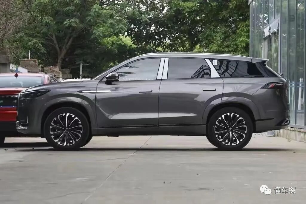 再看车身侧面,瑞虎9延续了硬朗的设计风格,凌厉的腰线搭配悬浮式车顶,让其颇有几分独特的豪华韵味,和路虎高端车型有着很高的相似度。