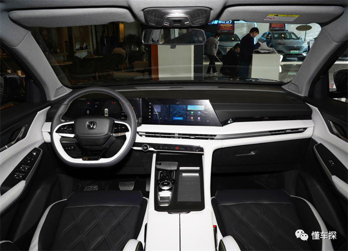 PLUS的新款内饰黑白配撞色反差下还是相当有味道的,不过这种配色不一定所有人都能接受,当然长安CS75