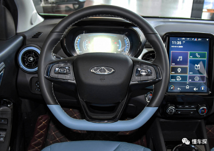 奇瑞小蚂蚁拥有一个三幅式平底方向盘,这款方向盘使用皮质材料,而且支持手动4向调节,比较符合该价位车型应有的水准。