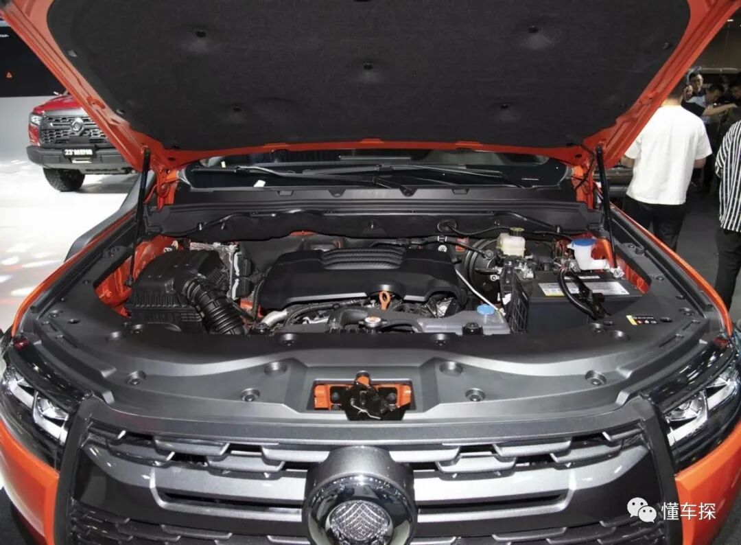 长城炮越野版车型提供了柴油和汽油版两款车型,均为2.0T发动机,其中柴油发动机最大功率为120kW,峰值扭矩为400N·m,汽油发动机最大功率为140kW,峰值扭矩为360N·m。