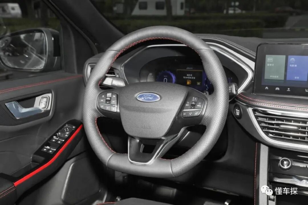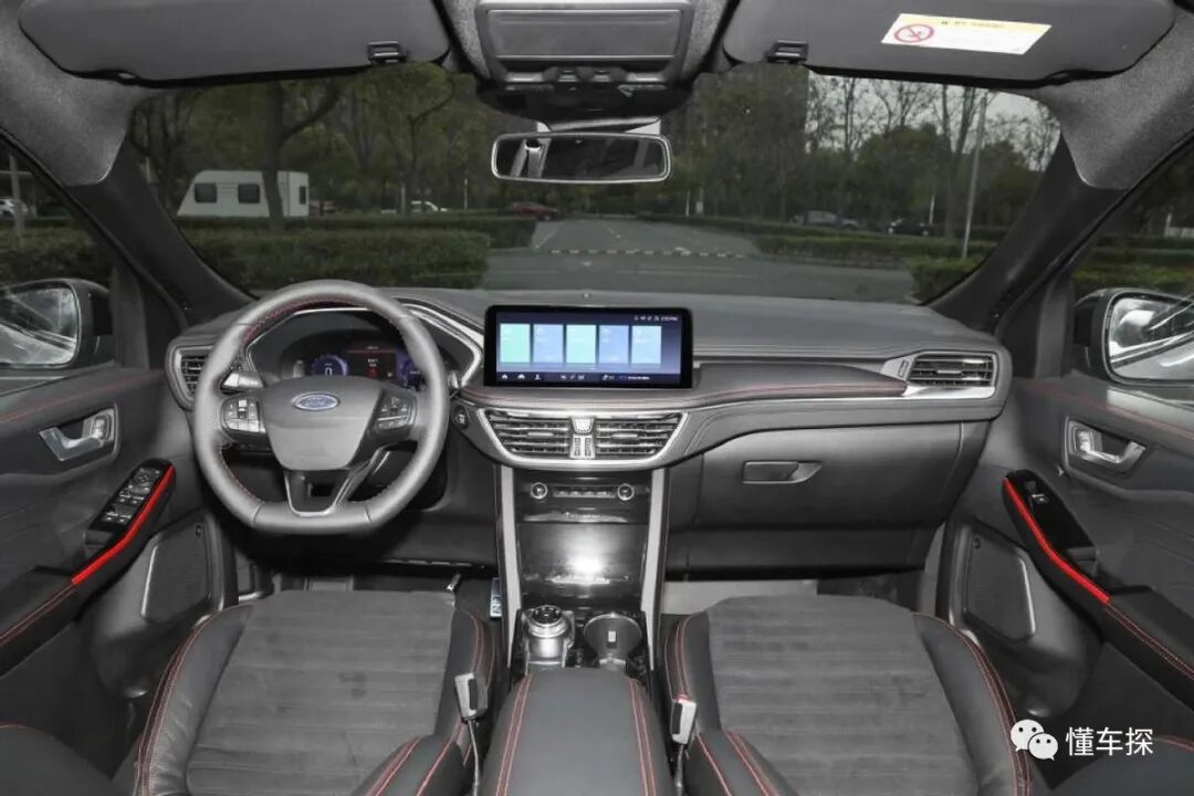 比如T字型中控台没什么不妥,12.3英寸悬浮式中控屏也不显突兀,相比日系那种悬浮式设计要好看很多,最起码不会觉得廉价,且内置SYNC+车机系统,互联体验也是可圈可点。