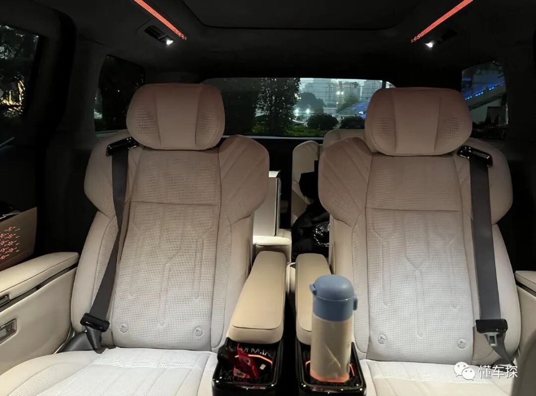 极氪009的第三排座椅胜在空间大,而且支持靠背调节,在第二排乘客不过分浪费空间的情况下,第三排乘客可以自由的伸展双腿,不是所谓的“假七座”。